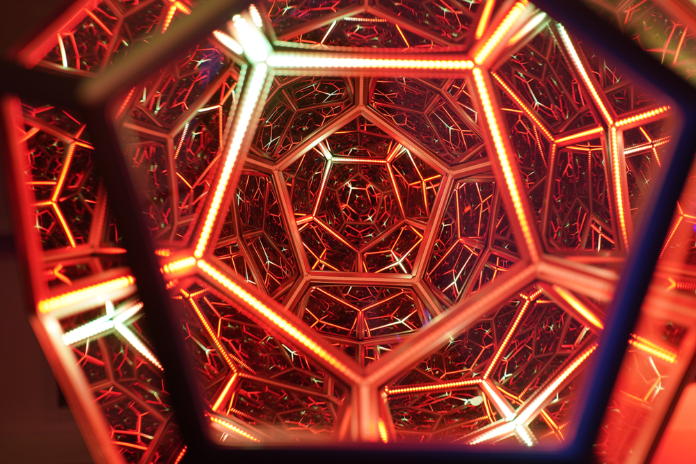 Artă Luminoasă cu Dodecaedru Infinit Colorat